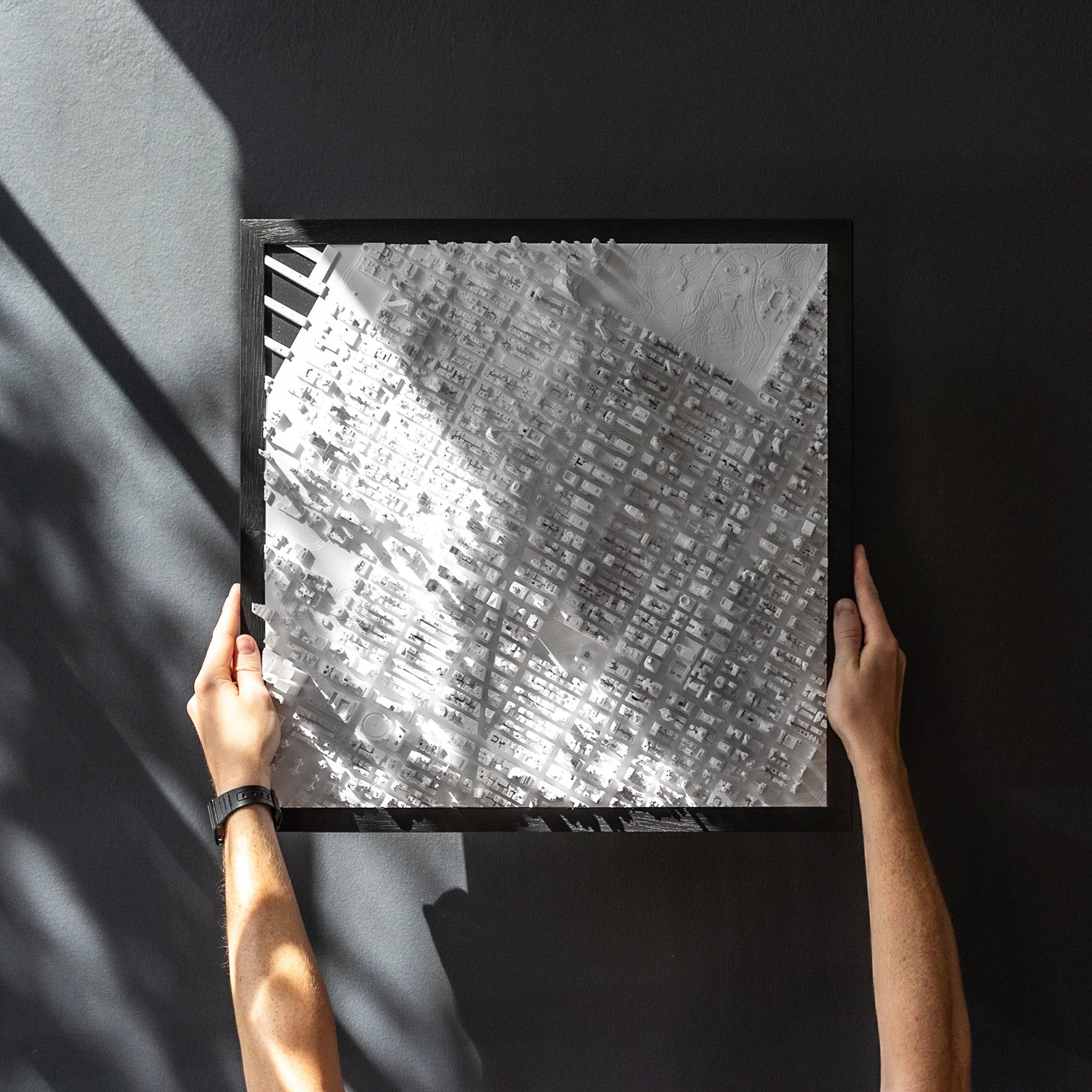 Yes, our models are oriented to true north, ensuring geographical accuracy and a true-to-life representation of each city. Each frame comes with a mounting bracket to assist you with orienting the city.